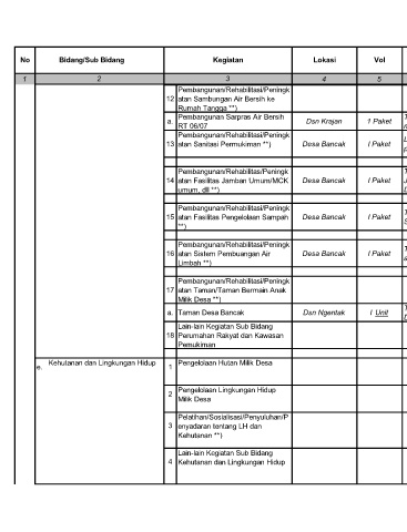 13 atan Sanitasi Permukiman **) Desa Bancak I Paket Lancarnya aliran air di V V V V V V V 50,000,000 /th APBDesa Swakelola