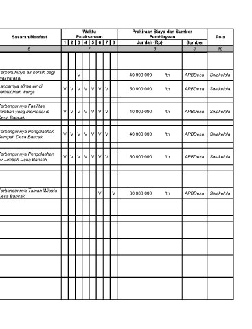 16 atan Sistem Pembuangan Air Desa Bancak I Paket Terbangunnya Pengolaahan V V V V V V V 50,000,000 /th APBDesa Swakelola