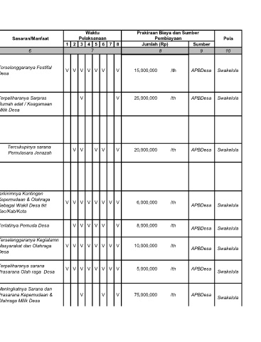4 Pemeliharaan Sarana dan Terpeliharanya Sarpras V V 25,000,000 /th APBDesa Swakelola