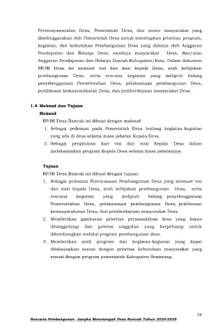 1. Sebagai pedoman Perencanaan Pembangunan Desa yang memuat visi