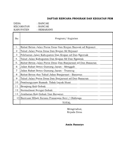 9 Talud Jalan Poros Desa Dsn Banjarsari sd Dsn Banaran DPU Desa Bancak 3,000 m 1,000,000,000