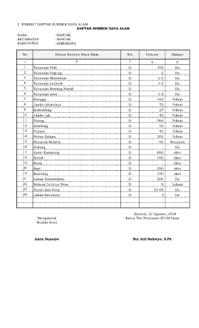 2. FORMAT DAFTAR SUMBER DAYA ALAM