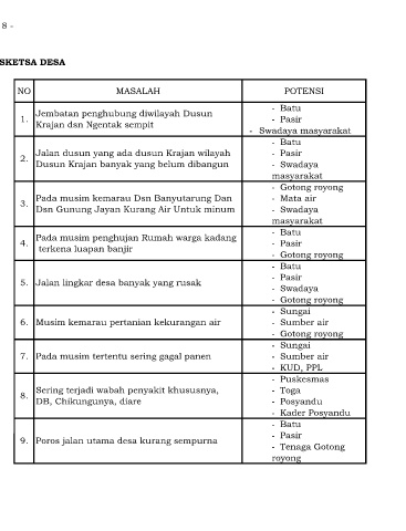 9. Poros jalan utama desa kurang sempurna