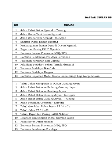 DAFTAR USULAN RPJMDESA 2020- 2028