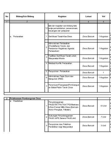 e. Pertanahan 1 Sertifikasi Tanah Kas Desa Desa Bancak 1 Kegiatan V V V V V V V 40,000,000 /th APBDesa Swakelola
