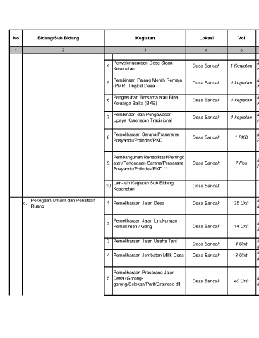 c. 1 Pemeliharaan Jalan Desa Desa Bancak 35 Unit V V V V V V V 100,000,000 /th APBDesa Swakelola